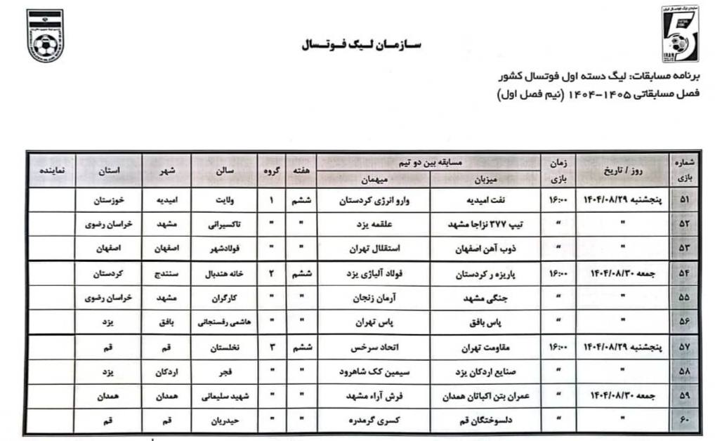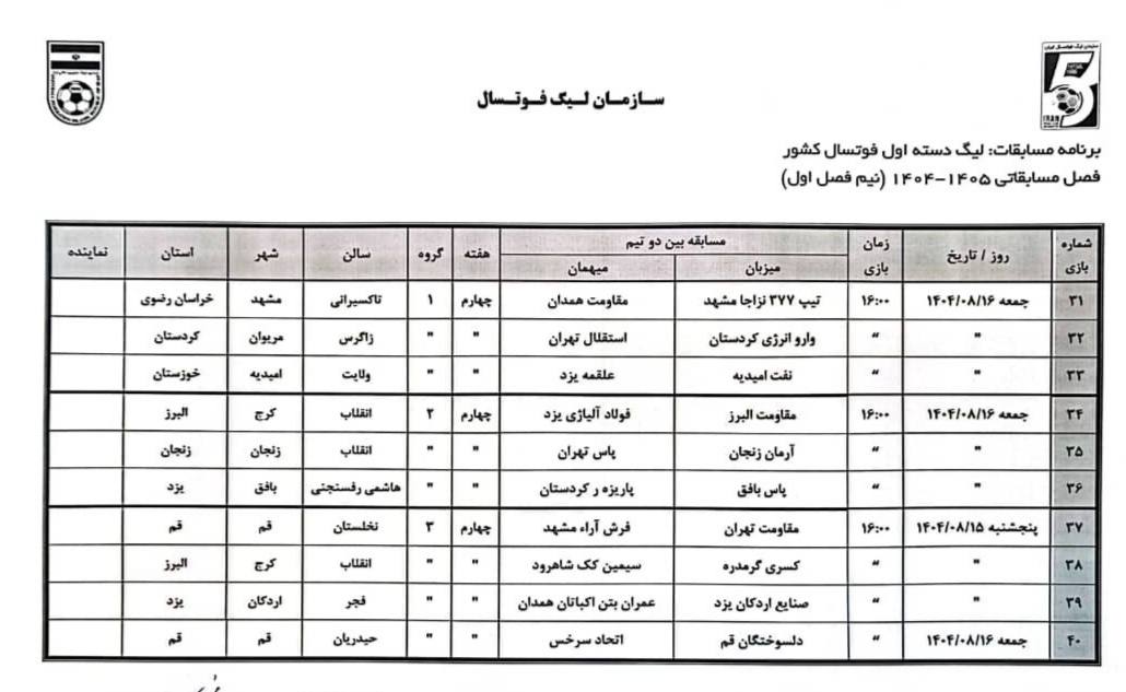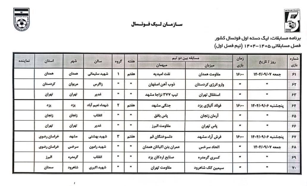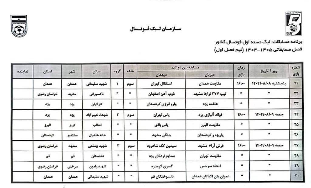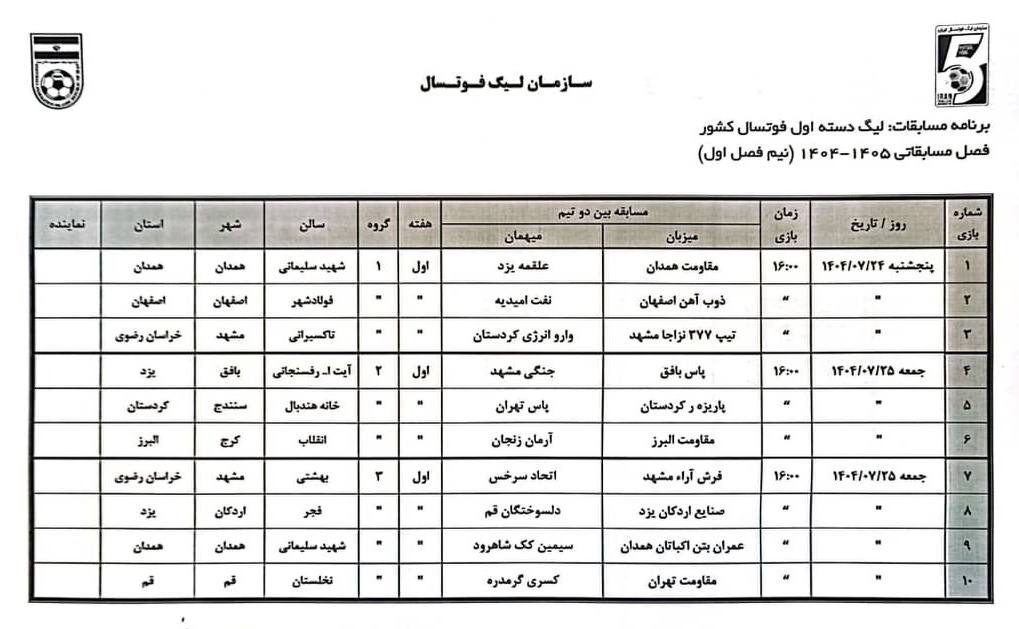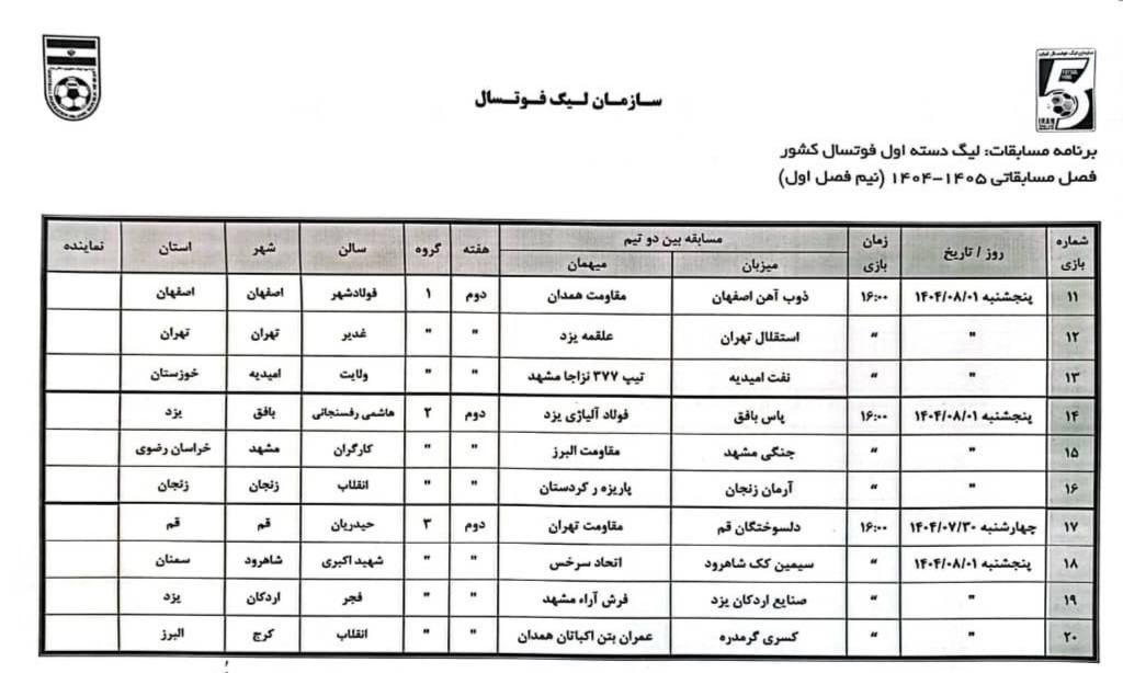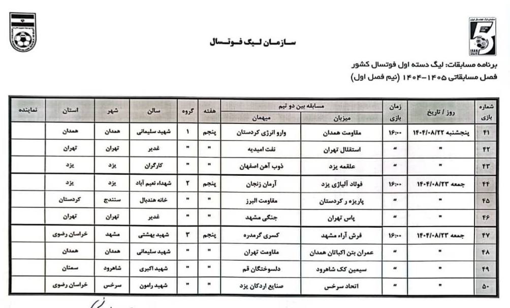 به گزارش پایگاه خبری فوتسال ۲۰۲۰، برنامه کامل نیم فصل رقابتهای لیگ دسته اول فوتسال کشور در فصل جدید از سوی سازمان لیگ فوتسال اعلام شد.