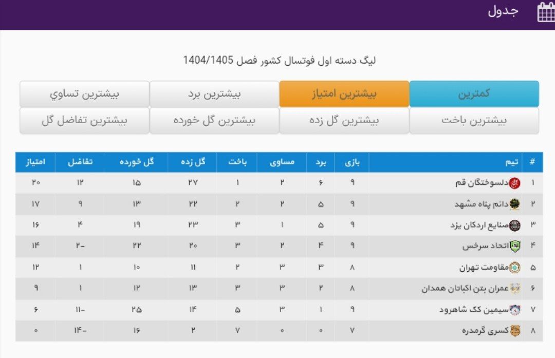 نتایج کامل مسابقات هفته نهم لیگ دسته اول به شرح زیر است.