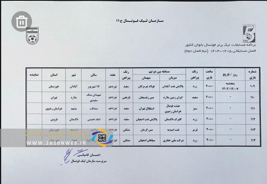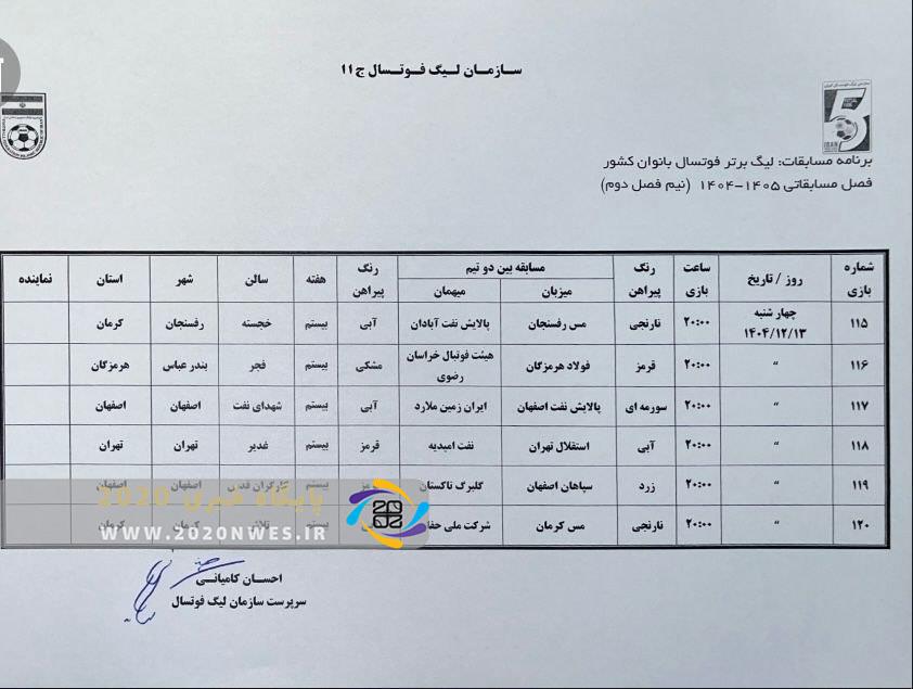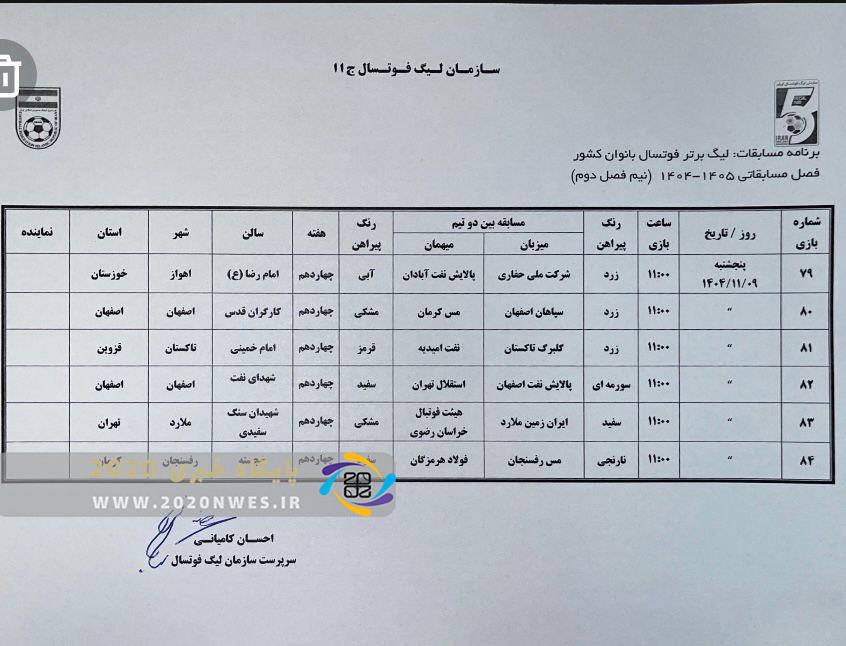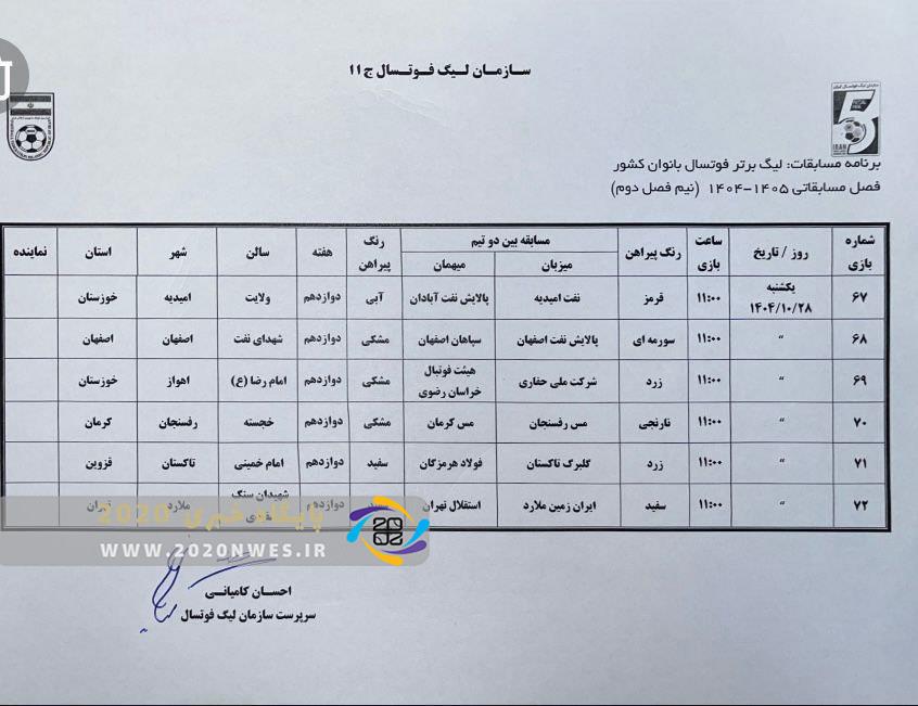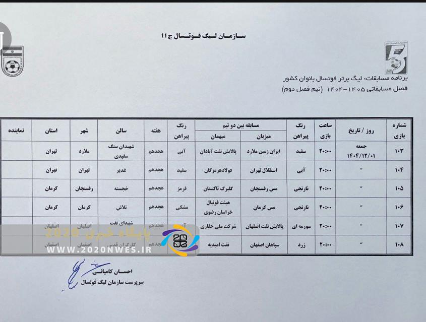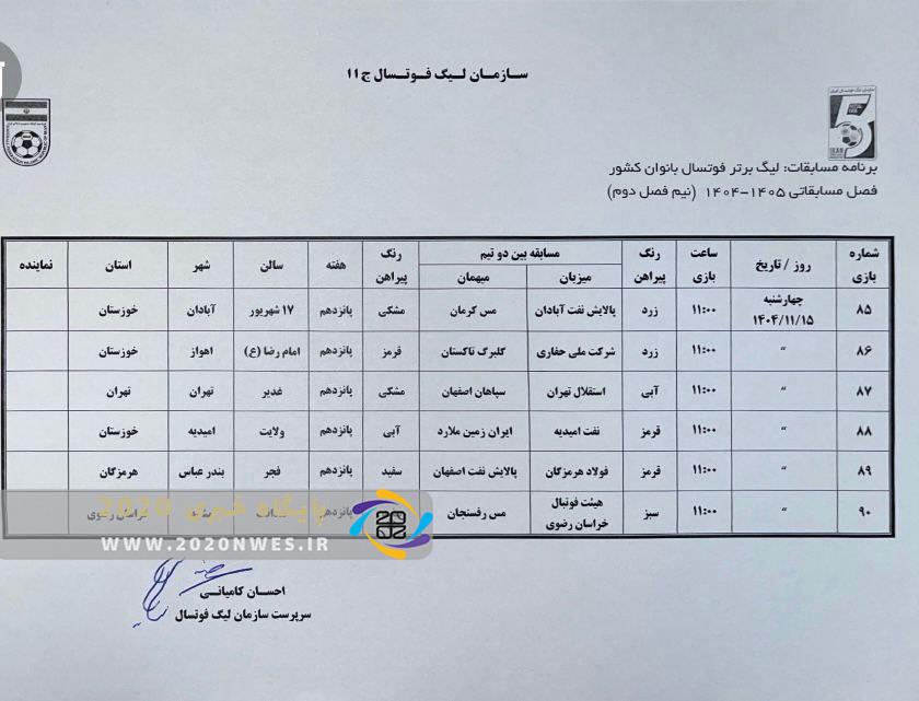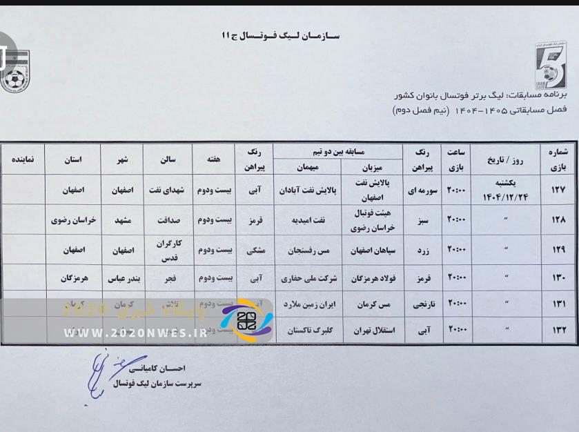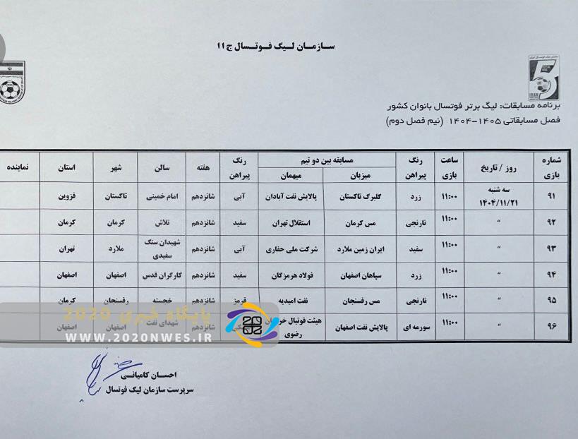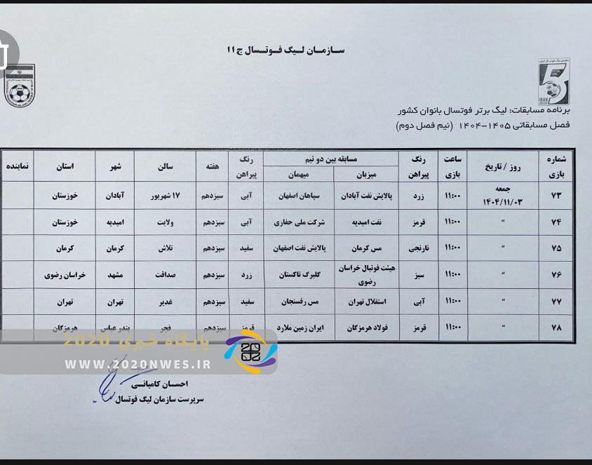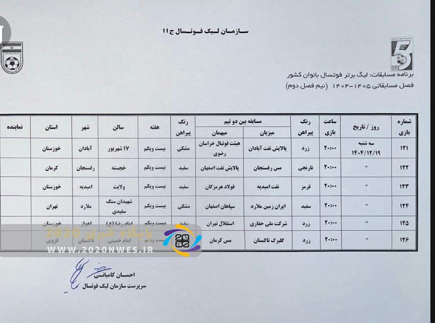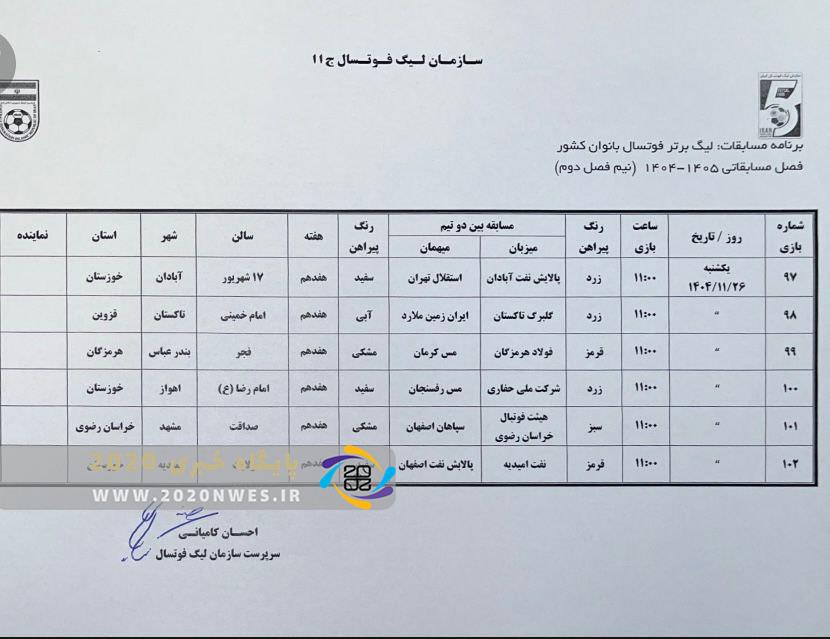 به گزارش پایگاه خبری ۲٠۲٠، سازمان لیگ فوتسال برنامه کامل نیم فصل دوم لیگ برتر بانوان را اعلام کرد.