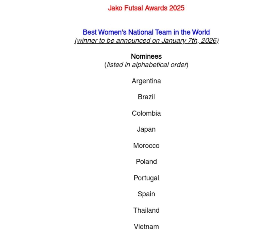 به گزارش پایگاه خبری ۲۰۲۰، سایت فوتسال پلنت (Futsal Planet) پس از اعلام اسامی نامزدهای عنوان برترین تیم ملی فوتسال زنان جهان در سال ۲۰۲۵، طی نظرسنجی، برترین تیم ملی را اعلام کرد.