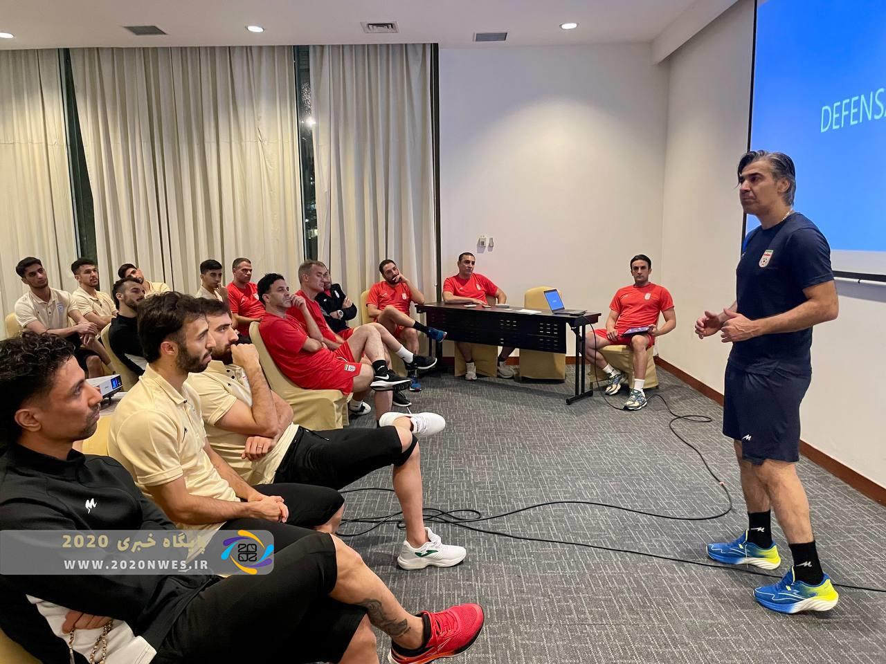 در این جلسه، وحید شمسایی سرمربی تیم ملی با تأکید بر انگیزه بالای تیم عراق گفت: ما روبهروی تیمی بازی میکنیم که از نظر انگیزشی بسیار قوی است و شاید همین عامل بیش از مسائل فنی باعث صعودشان شده باشد. عراق لیگ فعال دارد و بازیکنانی جنگنده و از نظر بدنی سختکوش در اختیار دارد. مقابل چنین تیمهایی نباید لحظهای این ویژگیها را فراموش کنیم.