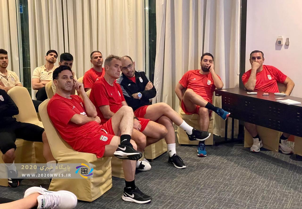 در ادامه این جلسه، ویدئوهای بازیهای اخیر تیم عراق مورد آنالیز قرار گرفت. تیم عراق در مرحله حذفی و در میان شگفتی همگان موفق شد با نتیجه ۴ بر ۲ تایلند را شکست دهد و حریف ایران شود.