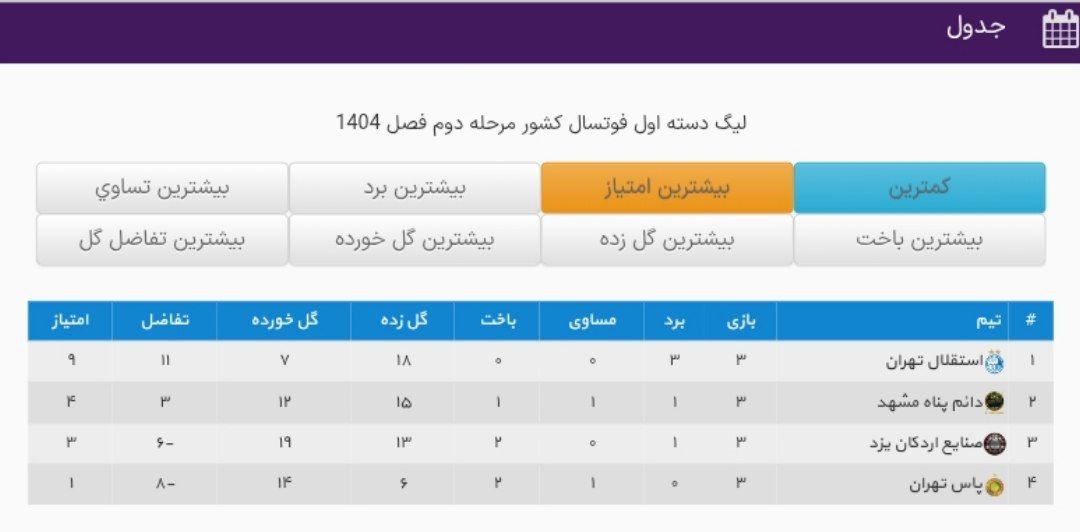 نتایج کامل هفته سوم مرحله نهایی مسابقات لیگ دسته اول آقایان؛
