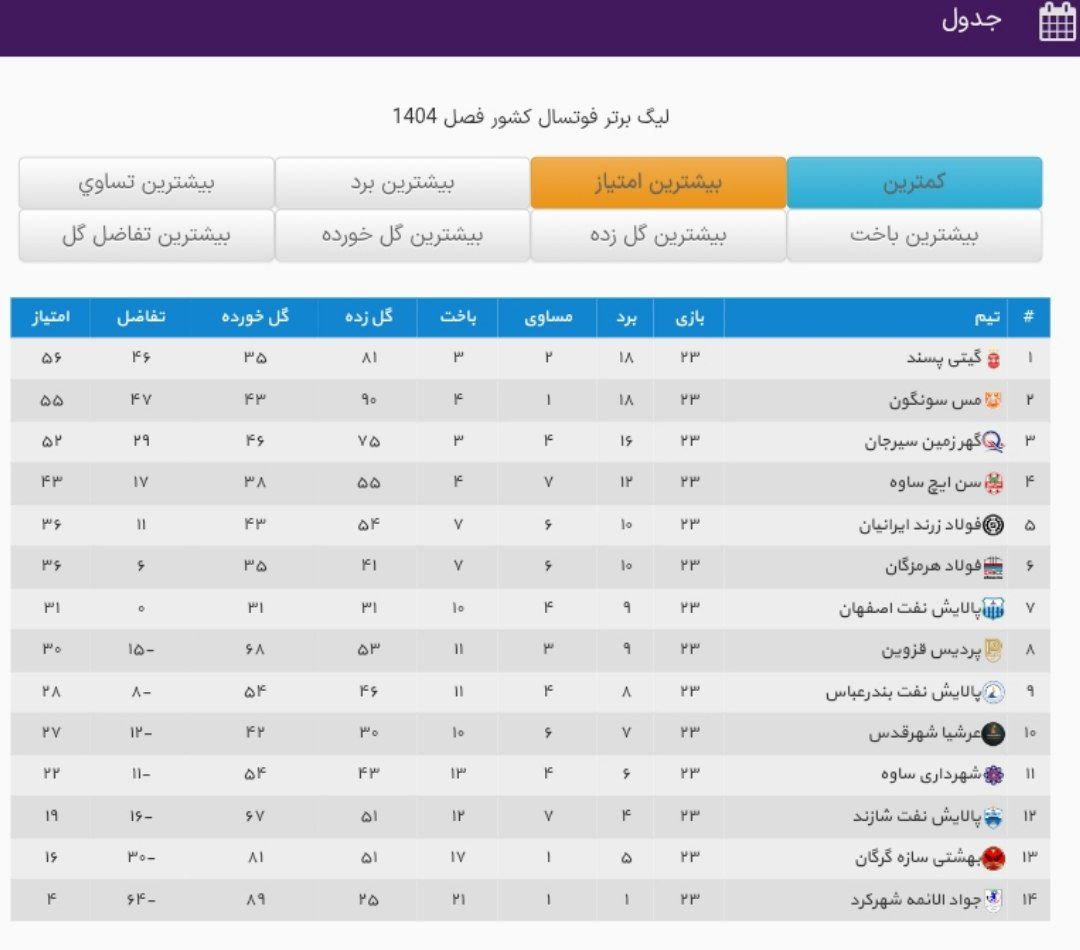 نتایج کامل هفته بیستوسوم: